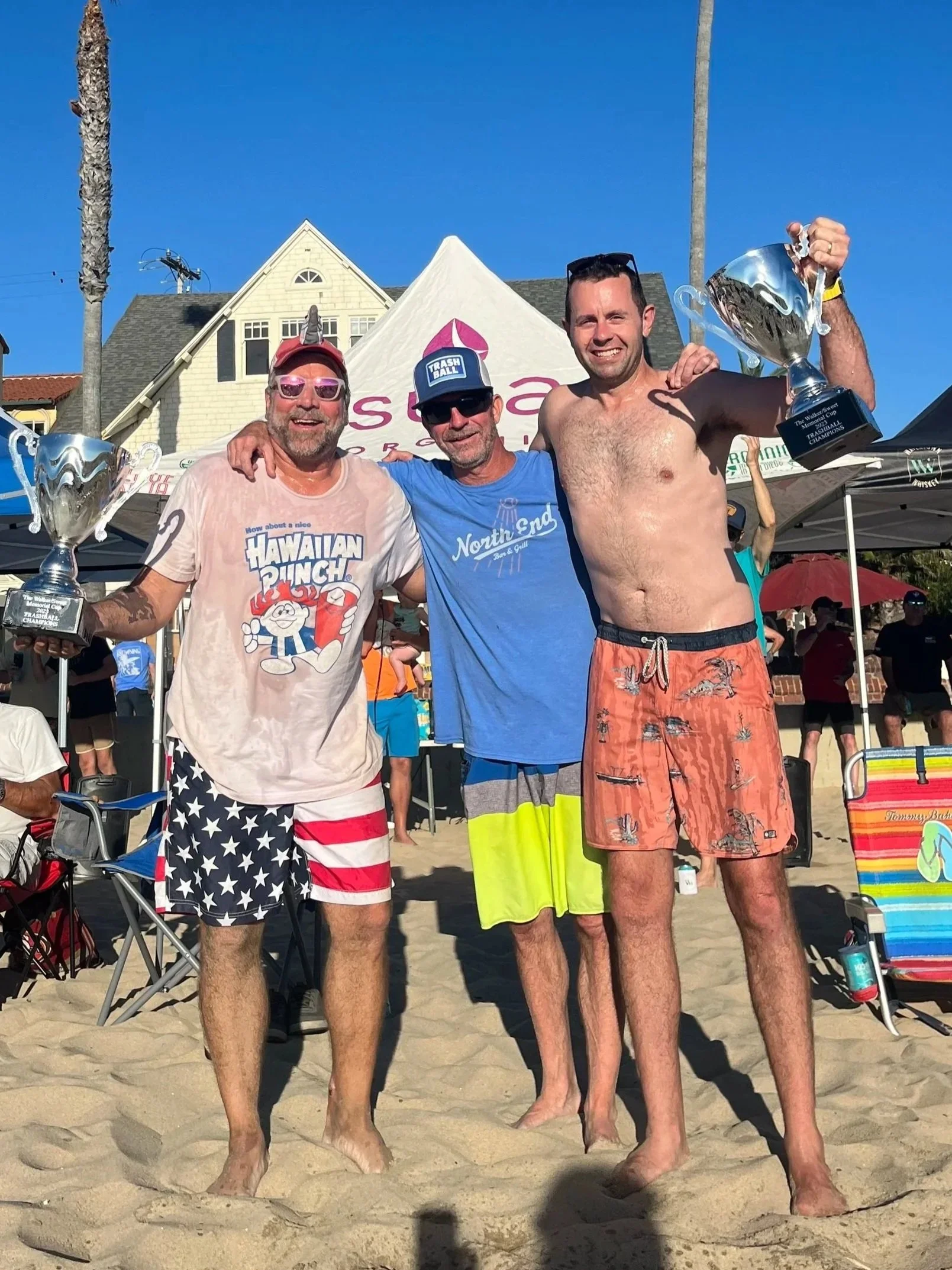 Simply put, Trashball is just guys being dudes while incorporating football toss and drinking beers. Every year, 60+ individuals are paired into teams of two and compete for year-long bragging rights and a place in the history books! The South Bay is known worldwide as the home of the world’s best beach volleyball players and the these legends are etched into immortality on the Manhattan Beach Pier. More locally famous, the legends of Trashball are etched into immortality on Captain Ron’s Tournament Champion Board which proudly hangs in one of the South Bay’s favorite watering holes.